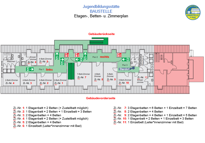 Wenn Sie die Zimmerverteilung vorab planen möchten, können Sie dazu die unten angefügte Datei verwenden: Entweder Sie drucken die pdf-Datei, um handschriftliche Einträge machen zu können, oder Sie verwenden alternativ die Excel-Datei zum Ausfüllen an Ihrem PC.